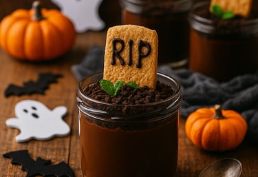 Layers of chocolate goodness topped with cookie “tombstones.” Scary good and fun to make!